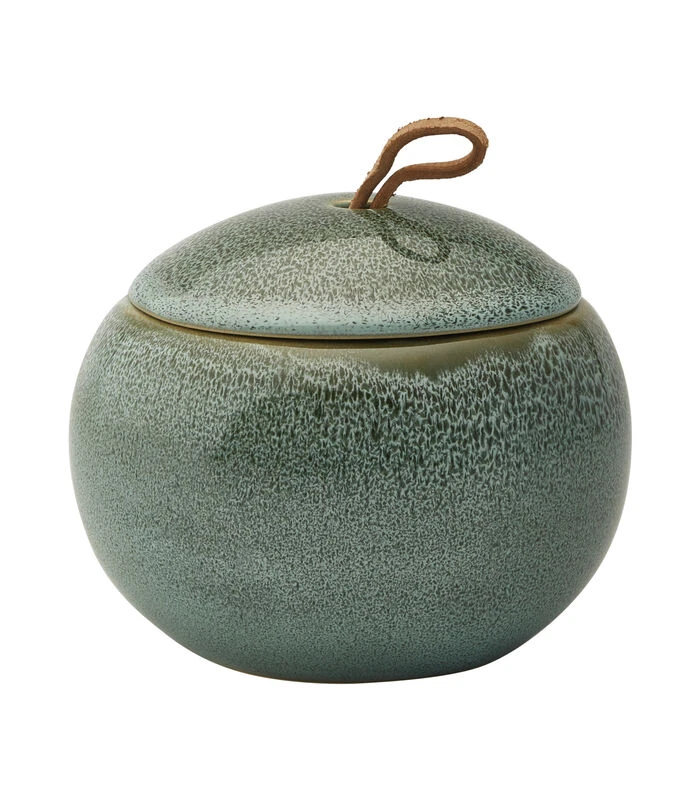 Deksel voorzien van bruin lederen lusje