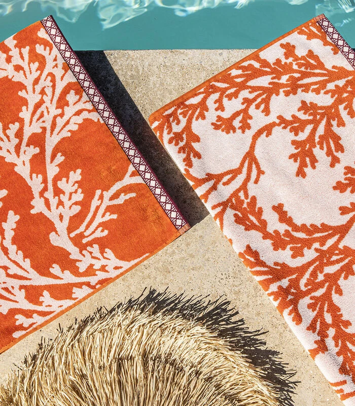 Duik in de oceaan, het koraalrode strandlaken vertegenwoordigt de zee in al haar pracht en praal. Ideaal voor uw uitstapjes op zee, en aan het strand, een onmisbaar accessoire tijdens uw zomer.