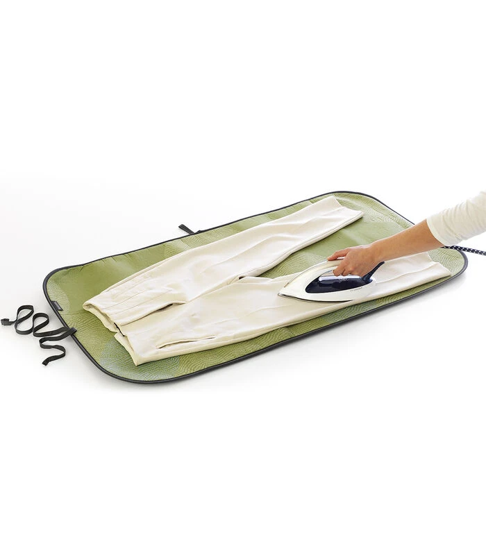 Brabantia maakt strijken gemakkelijker met de strijkdeken. Vouw hem uit waar je maar wilt en – voilà! – je hebt een strijkplank van 65 x 120 cm. De dikke, 6–laagse deken is ideaal voor (stoom)strijken, beschermt de ondergrond tegen hitte en vocht en blijft stevig op zijn plaats dankzij de antislip onderkant. Een kreukvrije oplossing!