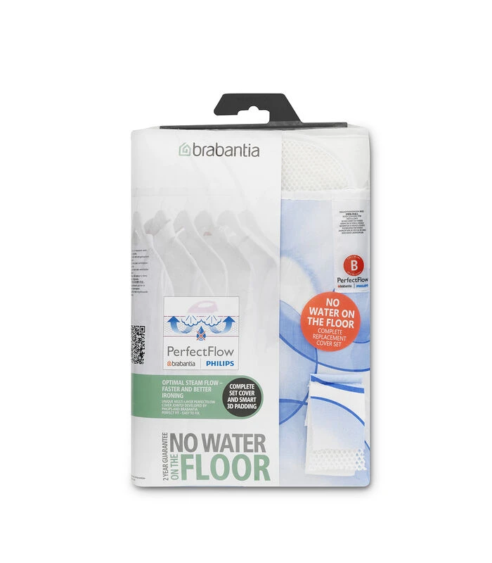 Haal het beste uit je stoomstrijkijzer of stoomgenerator met de alles–in–één PerfectFlow–strijkplankhoes. De innovatieve drielagige stof helpt kreukels makkelijker glad te strijken. De hoes neemt bovendien condens op, dus je vloer blijft droog. Ontworpen door Brabantia en Philips met jou en je Brabantia strijkplank B in gedachten.
