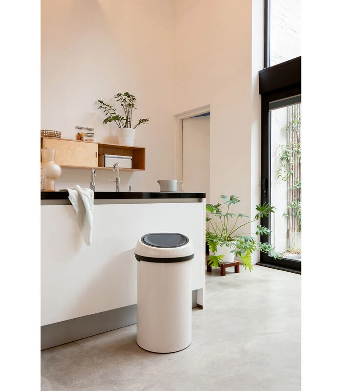 Geen tijd te verspillen? Deze XXL Brabantia Touch Bin 60 liter is op alle fronten een grote hulp in huis. Het deksel heeft een soft–touch opening voor makkelijk openen met een lichte aanraking. Hij heeft ook een beschermrand en de opening is zo groot dat je haast niet kunt morsen. Grote pluspunten!
