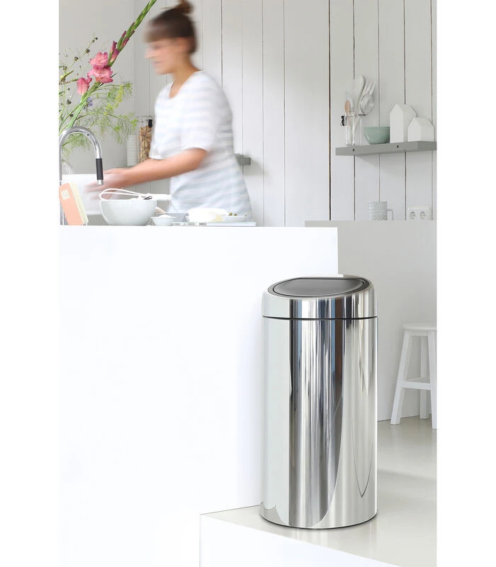 Verdubbel je recyclingvermogen met de Brabantia Touch Bin 2 x 20 liter. Een tijdloze afvalemmer met daarin twee uitneembare kunststof binnenemmers. Dus twee handige bakken nemen slechts één ruimte in beslag. Uiteraard heeft ook deze Touch Bin een beschermrand, is gemakkelijk te openen en schoon te maken en is gemaakt voor recycling. Recycling in stijl!