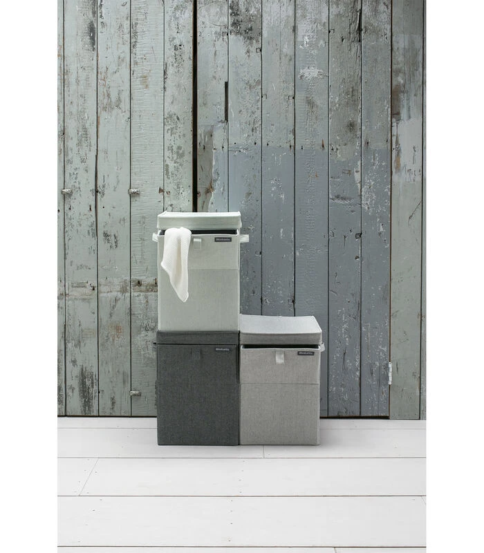 Wil je meer dan één wasmand, maar heb je er de ruimte niet voor? Brabantia heeft een oplossing die altijd past: stapelbare wasboxen van 35 liter – rechthoekig en stapelbaar, dus dubbel ruimtebesparend. De stevige manden hebben een deksel bovenop en een opening aan de voorkant, dus ook nog dubbel handig. Zet ze op elkaar en bouw je eigen sorteersysteem!
