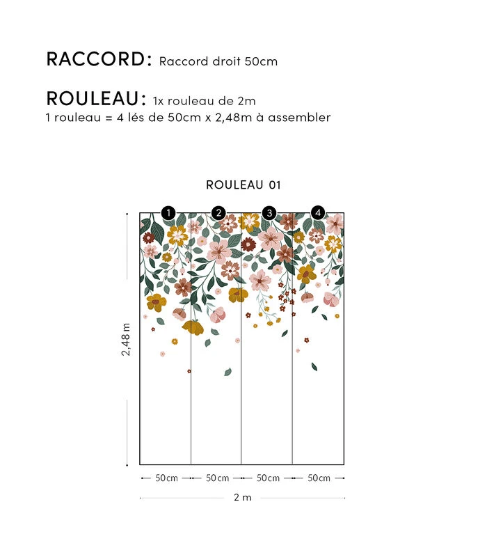 De afbeelding bestaat uit 4 stroken vliesbehang van 50 cm breed en 248 cm hoog.