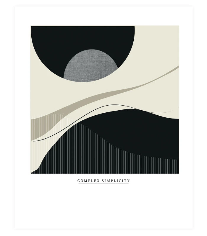 Het Complex Simplicity artwork heeft een breedte van even ruim 45 cm en een hoogte van iets meer dan 65 cm. Deze afmeting past perfect in een posterlijst van 50 cm breed en 70 cm hoog. Houd hiermee rekening bij het aanschaffen van een passende lijst of posterklem.