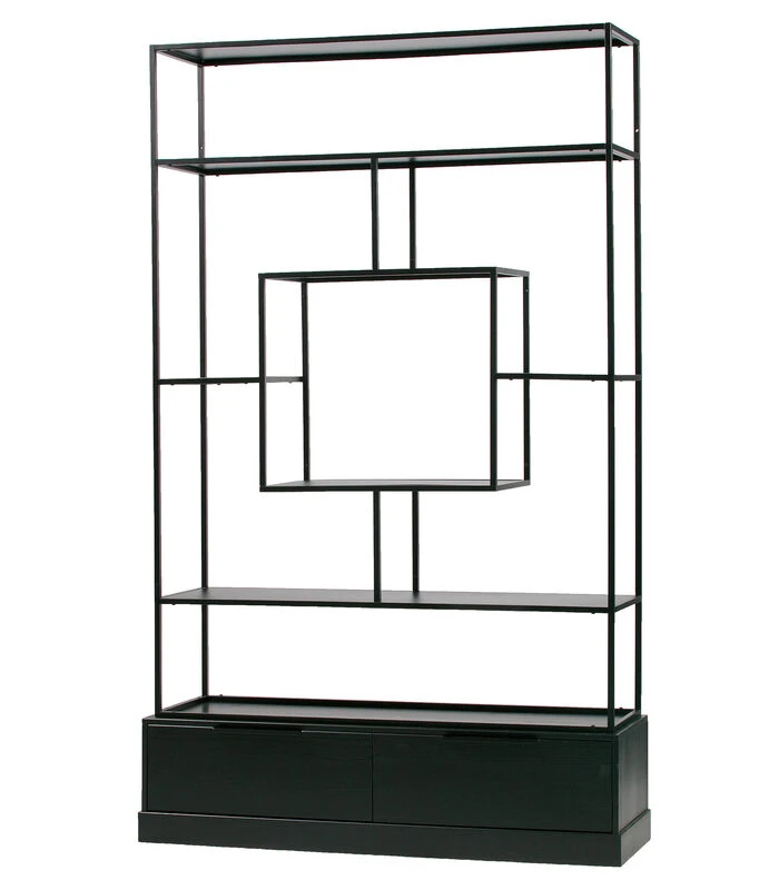 Exclusive Fons Vakkenkast – Metaal/hout – Zwart – 204x126x38