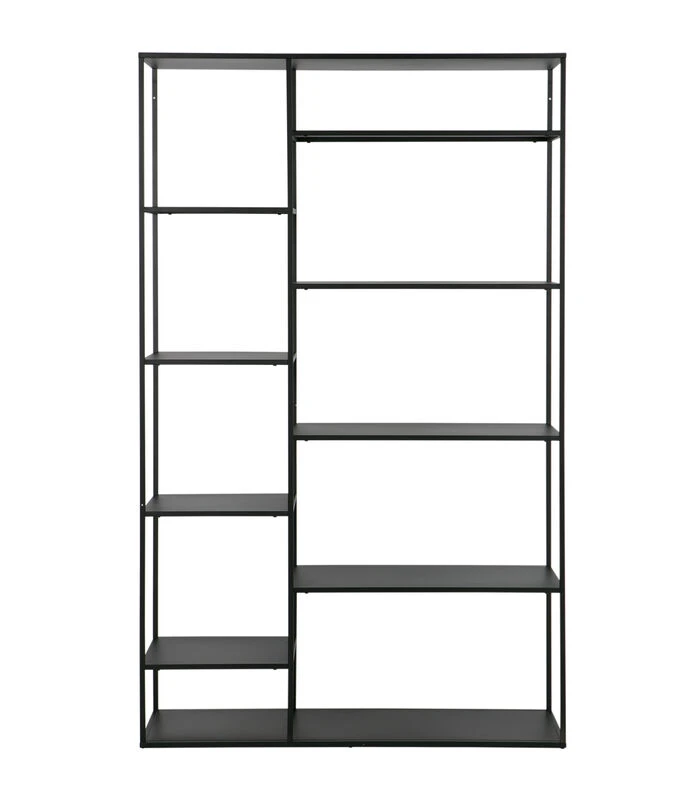 Het wandrek June, 195x120x35 cm (hxbxd), komt uit de collectie van het Nederlandse merk WOOOD. Dit metalen wandrek is gemaakt van een metalen frame gecombineerd met acht zwarte legplanken. Het geheel is afgewerkt met een zwarte poedercoating. Dit trendy en eigentijds wandrek kan worden gebruikt in zowel de woonkamer als de slaap/werkkamer Artikelkenmerken
