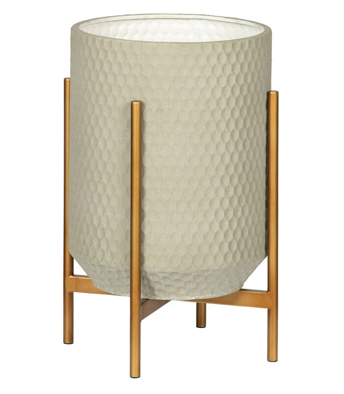 Ijzeren pot met betonfinish en goudkleurig ijzeren frame