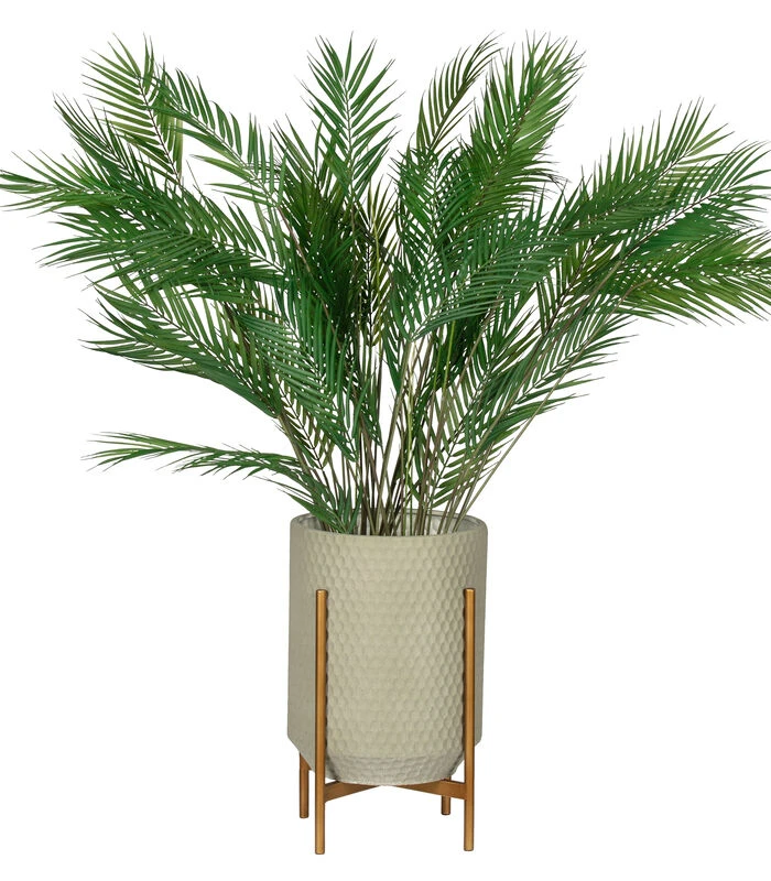 De plantenpot heeft een diameter van 13 cm en een hoogte van 39 cm. Het goudkleurige frame heeft een poothoogte van 41 cm, waarbij de diameter van het pootje 1,5 cm is. De hoogte van grond tot aan de onderkant van de pot is 14 cm.