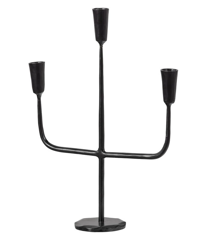 Deze elegante kandelaar komt uit de collectie van het Nederlandse interieurlabel WOOOD. De Sean kandelaar biedt ruimte voor drie kaarsen van ø 2 cm. Het metalen frame is ø 1 cm. De kaars in het midden staat op 40 cm hoog, de twee buitenste kaarsen staan op 29 cm hoogte vanaf het oppervlakte waar Sean op staat. De voet van Sean heeft een hoogte van 1 cm en een doorsnede van 10 cm. Plaats voor het beschermen van de kandelaar en de oppervlakte viltglijders aan de onderzijde. Dit voorkomt krassen of strepen wanneer Sean verschoven wordt.