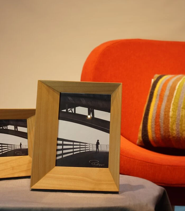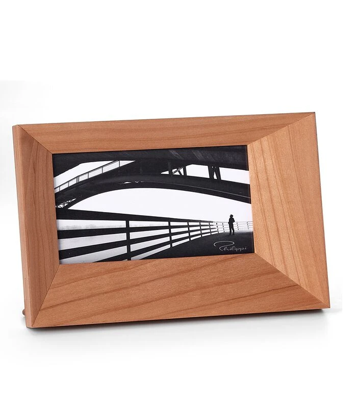 Het Lichtbruine elzenhout en de A–symetrische vorm zorgen ervoor dat je nog een tweede keer kijkt naar de fotolijst Focus van PHILIPPI. Eenvoud en elegantie laten je foto of afbeelding naar jouw keuze nog meer spreken. Of je hem nu wilt ophangen of neer wilt zetten beide is mogelijk. De liefde voor hout en vakmanschap zie je direct bij de Focus fotolijst van PHILIPPI.