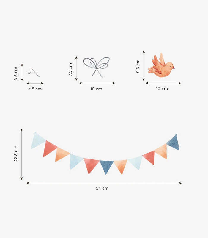 GENTLE FRIENDS Muursticker Kinderkamer – Wimpel En Vogelslinger 55x25cm