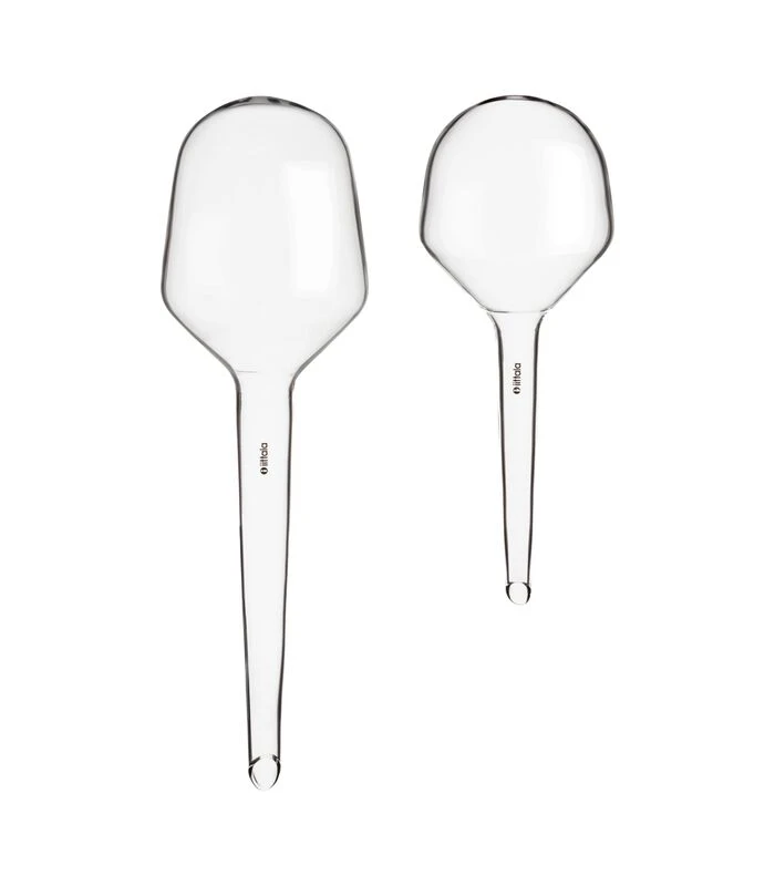 Met de nieuwe set met aqua globes van Iittala zijn de kamerplanten ook bij afwezigheid goed verzorgd. Ze zijn zeer eenvoudig in het gebruik: vul de aqua globe met schoon water en duw hem voorzichtig rechtop in de grond. De globes geven tot een week lang het water gelijkmatig af. Een fantastisch geschenk voor een housewarming of een handig stukje gereedschap voor iedereen met groene vingers.