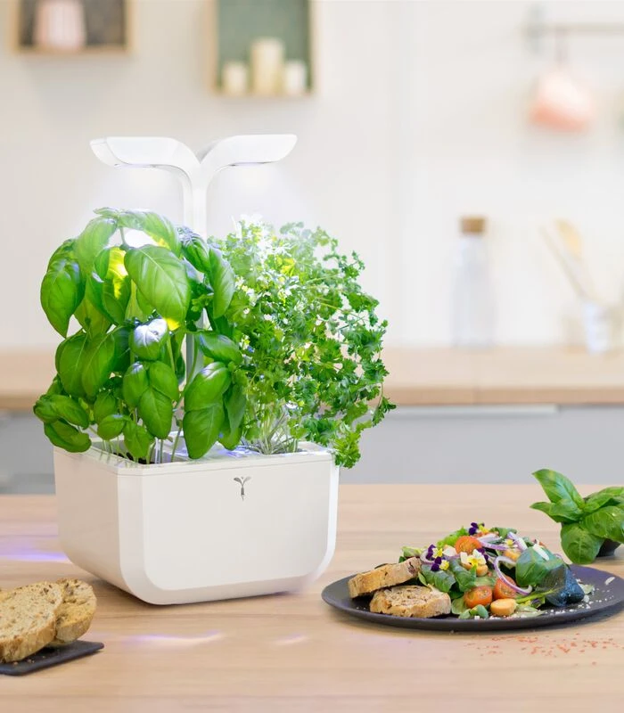 Kweek je eigen aromatische kruiden, bladgroente, eetbare bloemen en mini groenten het hele jaar door zonder moeite. Geen groene vingers ? De Véritable® Garden doet het allemaal zelf ! Geleverd met gratis Lingot® startpakket : Basilicum, Platte Peterselie, Tijm en Bieslook