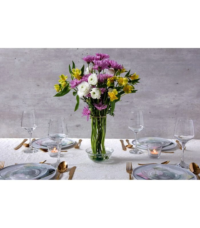 Creeër gemakkelijk een minimalistiche vaas uit bijna niets met behulp van Invisivase. Alles wat je nodig hebt is een kopje of kom gemaakt van glas of keramiek, bloemen en water en Invisivase doet de rest. Met haar slanke design valt de vaas nauwelijks op tussen de bos bloemen en tovert de bloemen om tot een elegant pronkstuk. De vaas is gemaakt van metaal, plastic en PVC en past in nagenoeg ieder kopje. Met behulp van een sterke zuignap blijft de Invisivase stevig op haar plek staan.