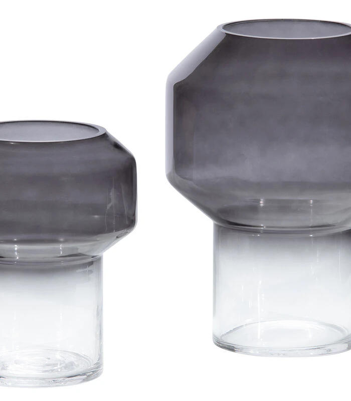 Geef jouw bloemen het podium dat ze verdienen! Deze gave Jaxx vaas komt uit de collectie van het Nederlandse merk WOOOD. Jaxx heeft een zwarte gradiënt die uitloopt in een transparante onderzijde. Het sterke glas, van 0,5 cm dik, is bewezen safety glass. De opening heeft een diameter van 9,5 cm. Hierna heeft Jaxx een verbreding met geometrisch design met een doorsnede van 15 cm, en loopt weer in tot dezelfde breedte als de opening. De voet en het brede stuk hebben elk een hoogte van 10 cm. Dit maakt dat Jaxx een totale hoogte van 20 cm heeft. De vaas weegt 400 gram.