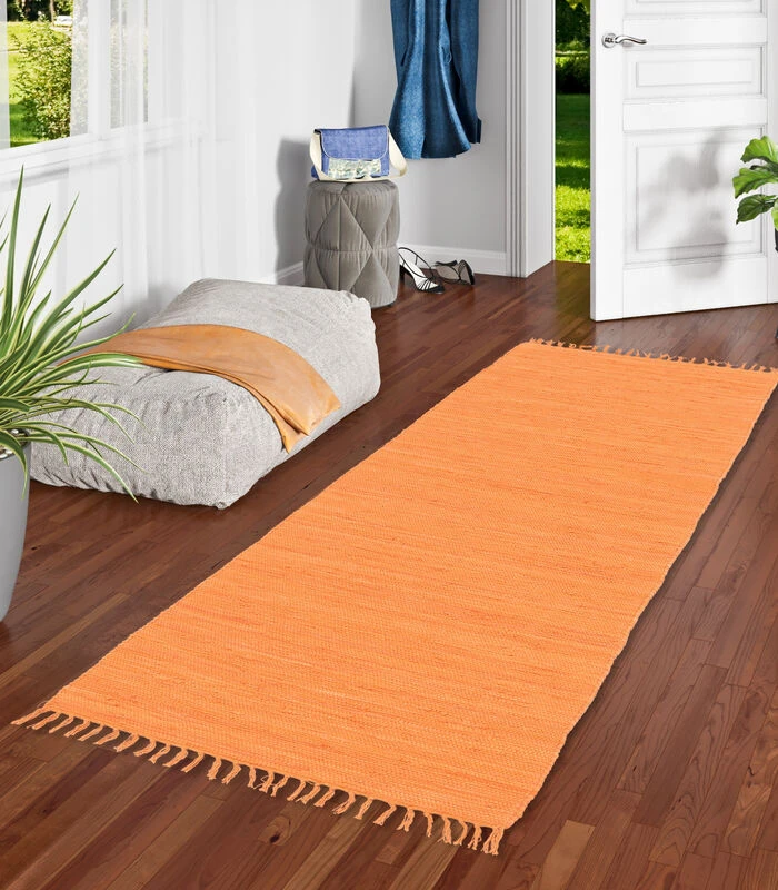 Het Jolly Cotton tapijt uit onze huidige collectie combineert natuurlijkheid en levendigheid. De handgemaakte katoenkwaliteit maakt het een slijtvaste allrounder die overal zijn plaats kan vinden – niet alleen in de woonkamer maar ook in de gang, keuken, badkamer, kelder enz. Het kan aan beide zijden worden gebruikt en is gemakkelijk schoon te maken. Het straalt op het eerste gezicht warmte en gezelligheid uit en maakt zo – mede dankzij de levendige kleuren – stijlvolle accenten in elke ruimte mogelijk. Wil je een blikvanger? Dan heb je het gevonden!