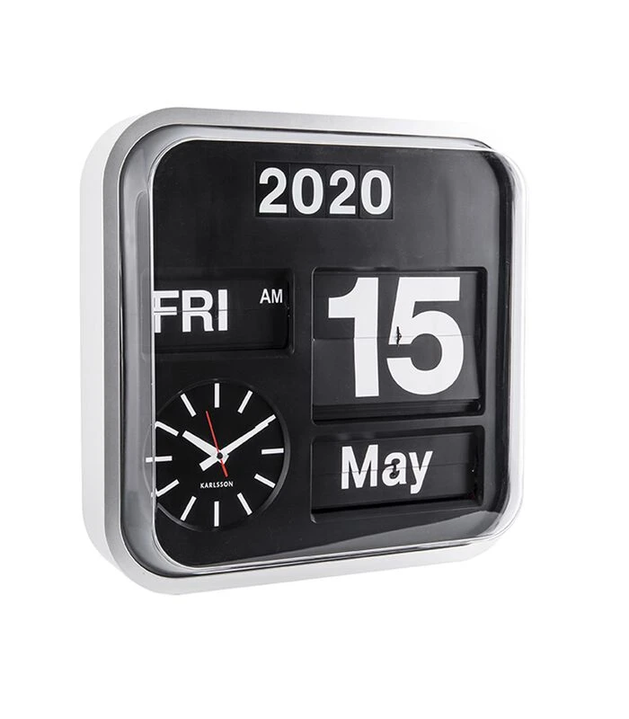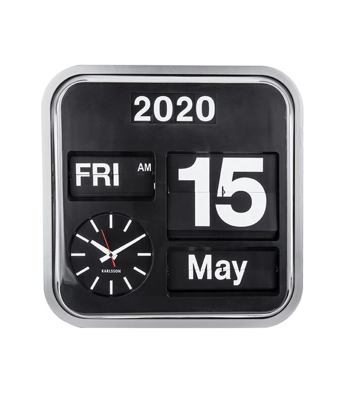Een echte klassieker van Karlsson. Wandklok Big Flip is een praktisch accessoire, maar ook een stijlvol item aan de wand. Big Flip van Karlsson laat niet alleen de tijd zien, ook de dag en datum kunnen worden afgelezen. Zo heb je met één blik een compleet overzicht. Deze Karlsson klok is zeer bruikbaar in zakelijke omgevingen – op kantoor of in je home office –, maar ook in de keuken of woonkamer komt wandklok Big Flip tot zijn recht. De wandklok maakt indruk met een retro look die doet denken aan de jaren ’50. De eenvoudige zilveren behuizing met zwarte wijzerplaat maakt hem tot een modern decoratief item aan de wand. Always on time! Karlsson klokken en wekkers zijn wereldwijd favoriet.