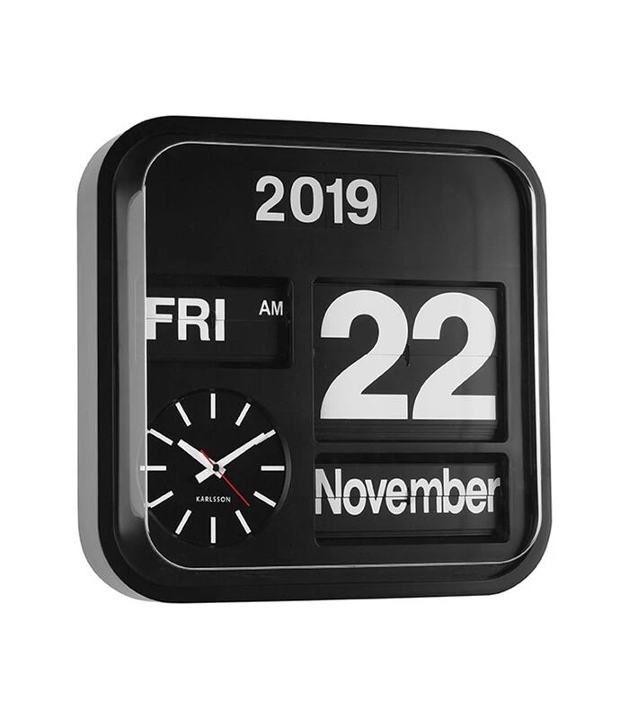 Karlsson Wandklok Big Flip – Zwart – 43x43x16cm