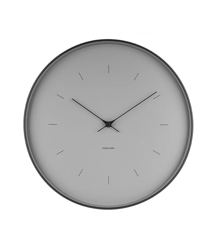 De moderne stalen wandklok, ontworpen door Boxtel & Buijs voor Karlsson, is verkrijgbaar in twee maten en 3 subtiele kleuren zwart, grijs en wit. De klokken en wekkers van Karlsson zijn wereldwijd favoriet!
