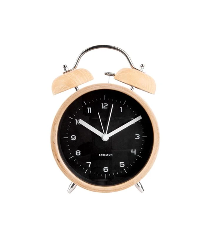 Karlsson Wekker Classic Bell – Hout Met Zwarte Wijzerplaat – 21x14x8cm