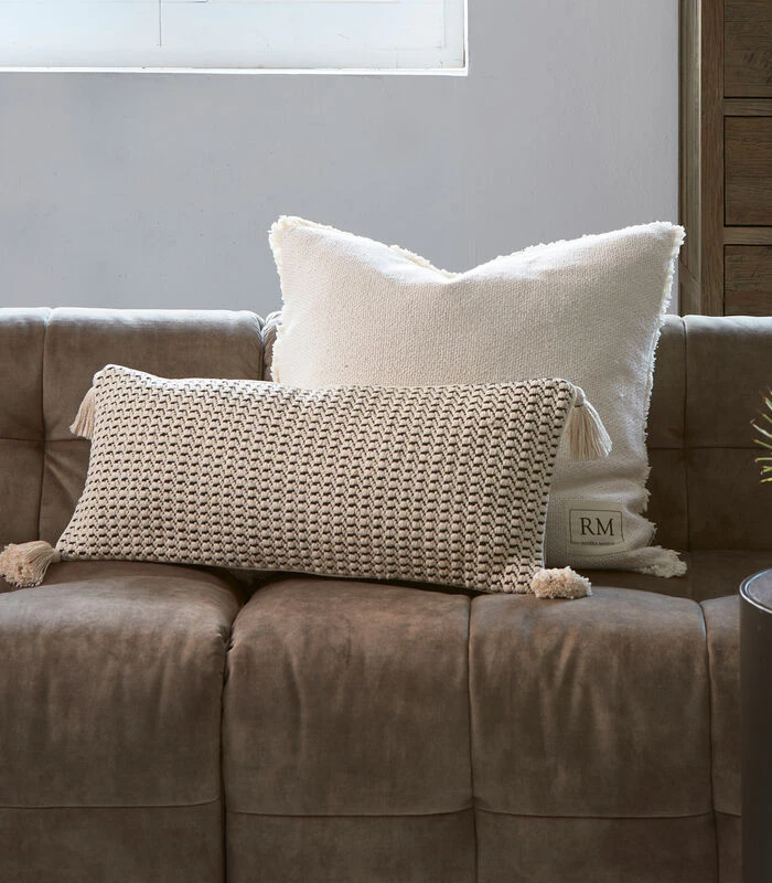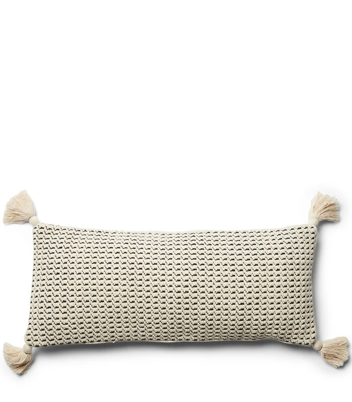 Kussenhoes, 70×30, Subtiele Print Met Kwastjes – Punalu ‘lu – Wit