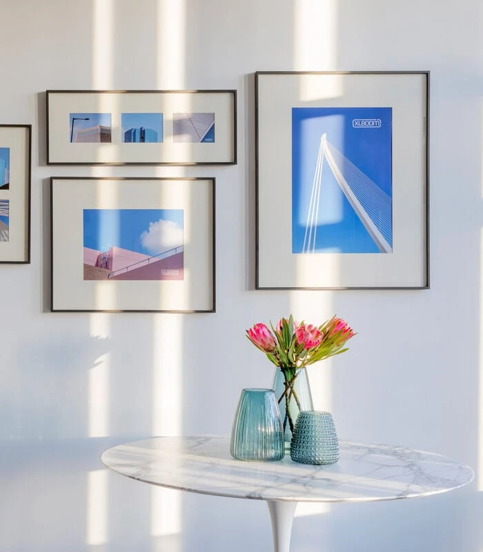In onze gunmetal gekleurde Leon kaders zitten de prachtige foto’s van Kaatje Verschoren. Het verfrissend geheel geeft jouw interieur een instant boost.
