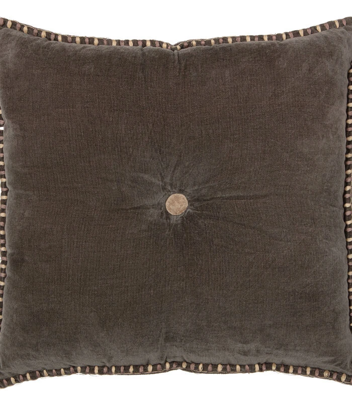 De kussenhoes is gemaakt van een zachte microvelvet van 100% katoen. De katoenen kussenhoezen uit onze collecties hebben een zichtbaar hoge kwaliteit. De plantaardige vezels zijn verweven tot een soepele stof die mooi te vormen is rondom de kussenvulling. De natuurlijke katoenvezel is van zichzelf zeer sterk en slijtvast. De kleuring van katoenen vezels of draden gebeurt met veel zorg en verlangt dus een zorgzame omgang, vermijd hierom grove wrijving en direct zonlicht.