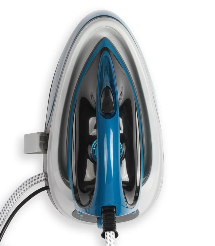 Stoomstrijksysteem Keramische zoolplaa t1,1 L uitneembare tank 3,5 bar druk Stoom omhoog stromen tot 90 g / min Klaar voor gebruik en lege tankindicator Dubbele stoomregeling op de handgreep Regelbare thermostaat in overeenstemming met de stof Anti–kalkfilter en opbergruimte voor de kabel aan de zijkant
