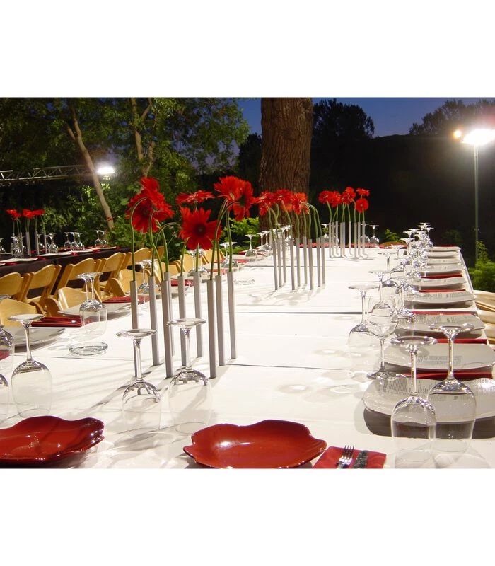 Een heel mooi en voor velen onbegrijpelijk sieraad voor op de gedekte tafel. Niemand snapt dat deze dunne vaasjes niet omvallen. Toch is het simpel, een metalen plaatje onder het tafelkleed en het vaasje met sterke magneet in de voet er op. Set van 5 stuks.