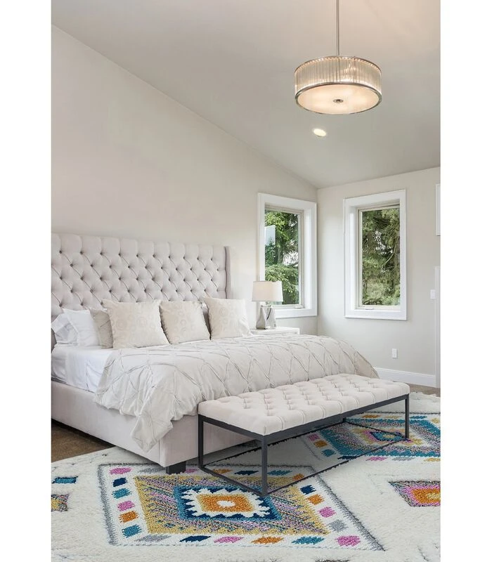 Deze collectie maakt gebruik van een knip–en–lusmethode en heeft een diepe, zachte geweven pool en een hoog getextureerde afwerking. Elk stuk is afgewerkt met een pomponrand.