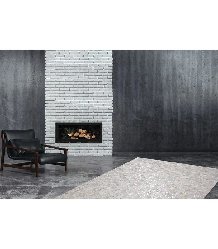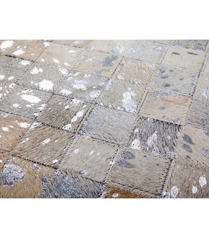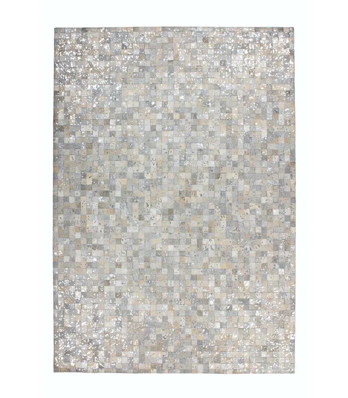 Metallic applicaties op echt leer met zachte pool kenmerken dit vloerkleed. Haal de individuele eyecatcher in huis en uw bezoekers zullen verrast zijn. De basis van het leren vloerkleed in patchwork design wordt gevormd door verschillende tinten van een kleurtoon. De bedrukte metallic folie is het bijzondere aan het vloerkleed, zet accenten en laat het vloerkleed glanzen.