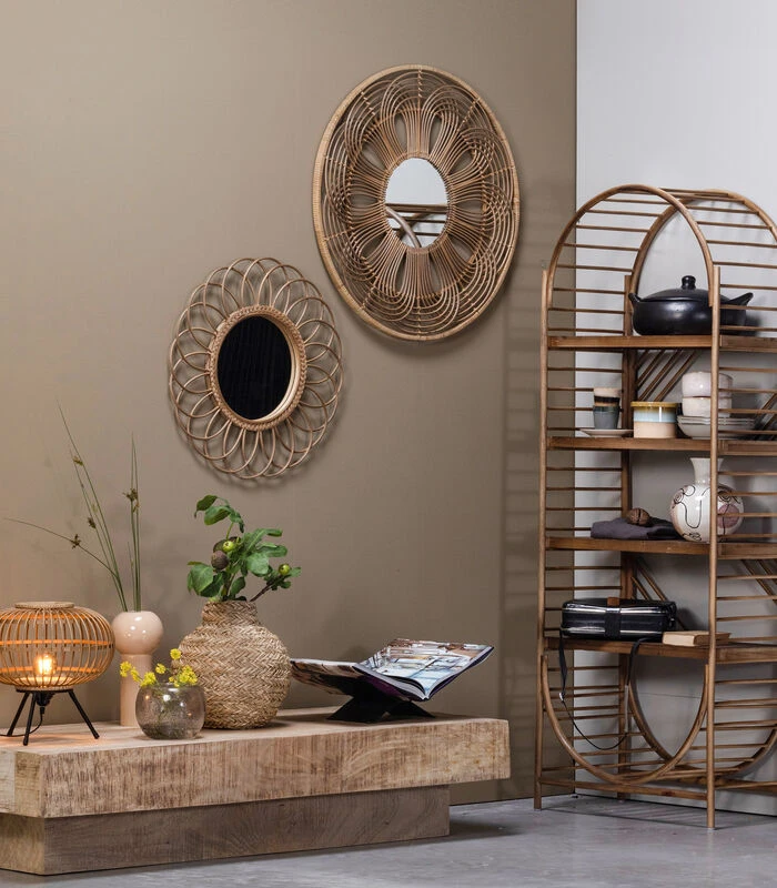 Haal een warme boho sfeer in huis met deze eyecatcher van een spiegel. De Obi spiegel komt uit de collectie van het Nederlandse interieurmerk Basiclabel en is gemaakt van 100% natuurlijk bamboe.