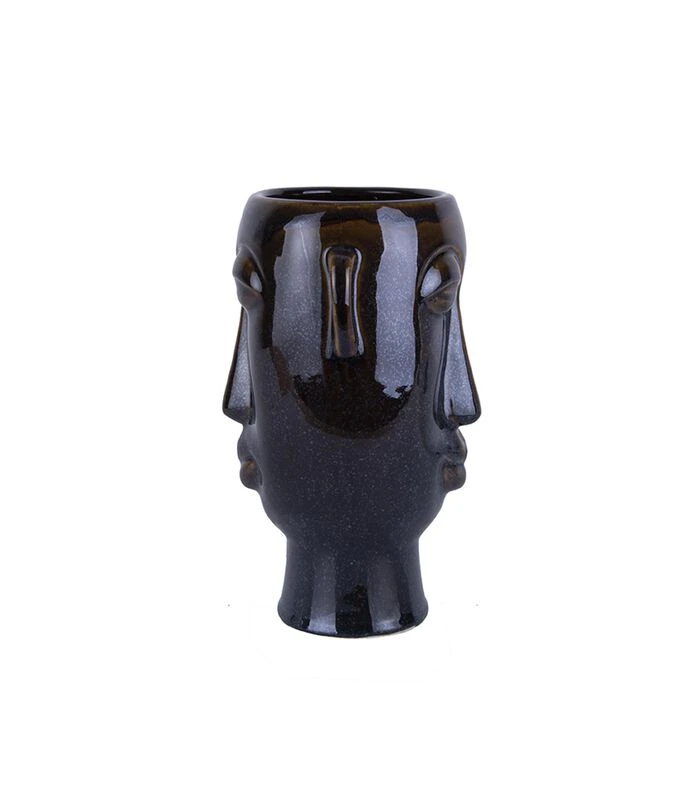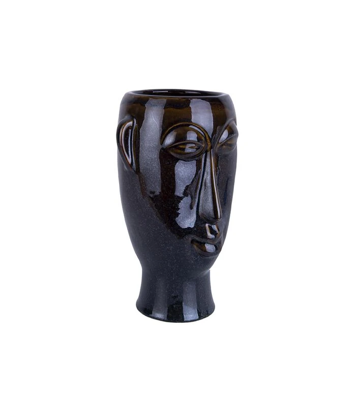 PRESENT TIME Plantenpot Mask – Glazuur Donker Bruin – Lang – 17,2×16,2×27,2cm