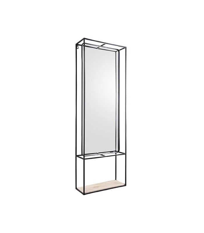 PRESENT TIME Wandrek Glance – Metaal Zwart Met Plank & Spiegel – 115x40x15cm