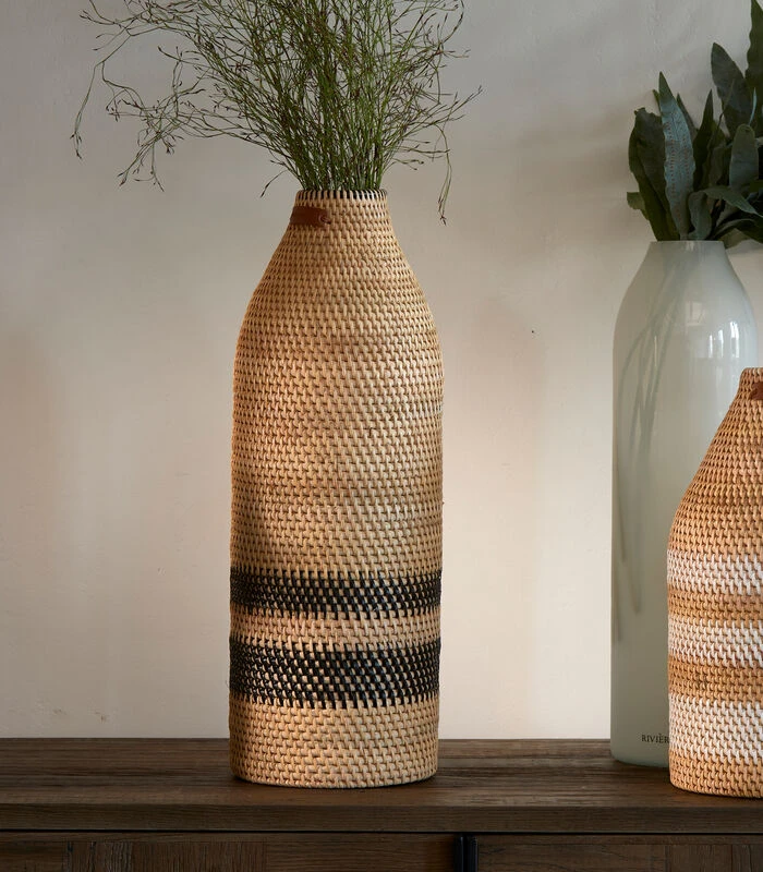 Rieten Vaas Droogbloemen, Met Strepen – Crystal Bay – Bruin / Wit