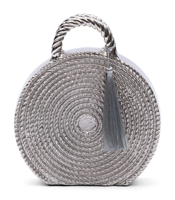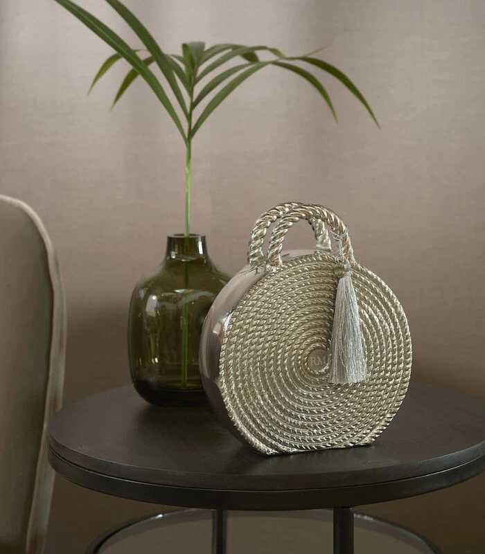 Deze aluminium tas is vast en zeker je mooiste ooit. De RM Bali Bag Statue is een plaatje in je interieur. Als RM–fan heb je natuurlijk de initialen al ontdekt in het midden van het reliëf. Aan de speelse tassel hangt het decoratieve muntje met het RM–beeldmerk.