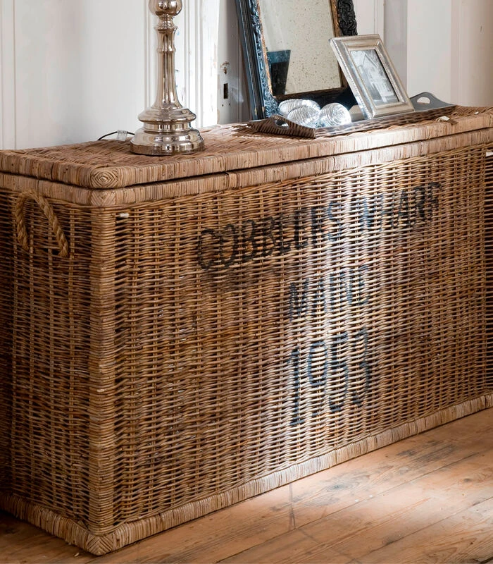 Mand gemaakt van rattan, afgewerkt met mahoniehout. Verkrijgbaar in drie maten of als set. De large versie gebruik je bijvoorbeeld voor het opbergen van uw (tuin)kussens en plaids, in de kleine manden het speelgoed van uw kinderen. Alles binnen handbereik, maar toch opgeruimd. Let op! Kan niet buiten worden gezet.