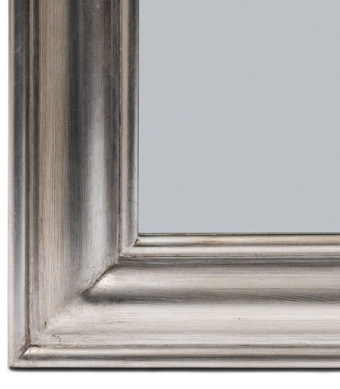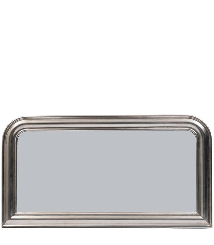 Een mooie, grote spiegel doet veel met een ruimte, zoals bijvoorbeeld deze spiegel uit de Place Vendôme–serie. Het is een grote rechthoekige, horizontale spiegel, waarbij de bovenste hoeken zijn afgerond. Mooi voor boven een dressoir of haltafel. De spiegel heeft een brede, houten lijst met reliëf in zilver of zwart.