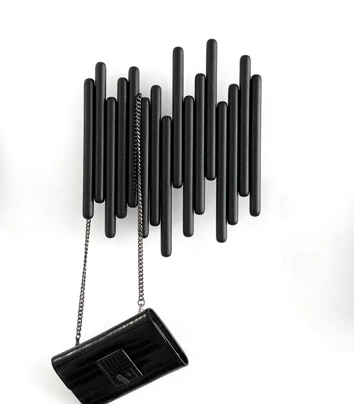 Creëer een speels kunstwerk met de unieke en moderne kapstok, Tuub. Gebruik ze voor alles en plaats ze overal; voor jassen in de gang, voor keukenhanddoeken in de keuken, voor badjassen en handdoeken in de badkamer… De mogelijkheden zijn eindeloos met de handgemaakte Tuub Large Zwart.