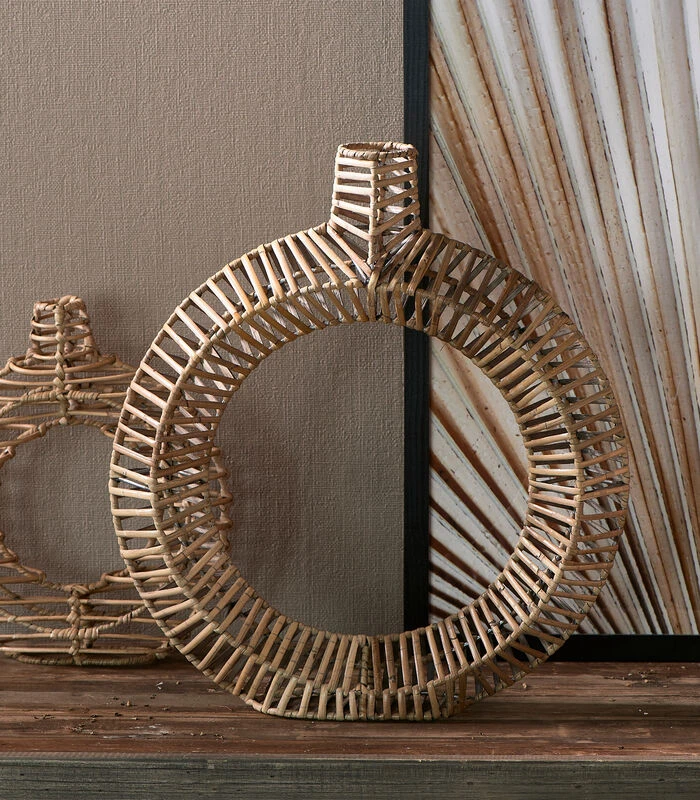 Met de RM Round Decoration Vase haal je een twee–in–één accessoire in huis. Deze opengewerkte vaas kan namelijk als los decoratie–item worden gebruikt. Maar het kan ook als vaas dienen, bijvoorbeeld met enkele pluimen, takken of kunstbloemen erin. De vaas is gemaakt van met de hand gevlochten ratten en is verkrijgbaar in verschillende maten.