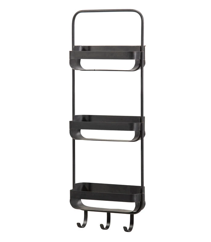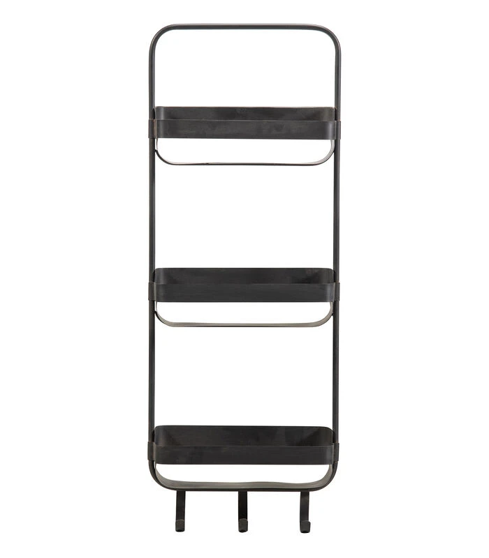 Dit leuke wandrek met een strak design komt uit de collectie van het Nederlandse merk WOOOD. Het metalen frame heeft een matzwarte poedercoating met een vintage uitstraling. Het design is mooi smal, perfect voor meerdere stoere woonstijlen. Het Akke wandrek heeft drie smalle plankjes, handig voor bijvoorbeeld sjaals en mutsen in de hal of hand– en theedoeken in de keuken. De drie ophanghaakjes zijn zeer praktisch en kunnen maar liefst 5 KG per haakje dragen.