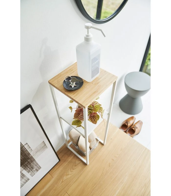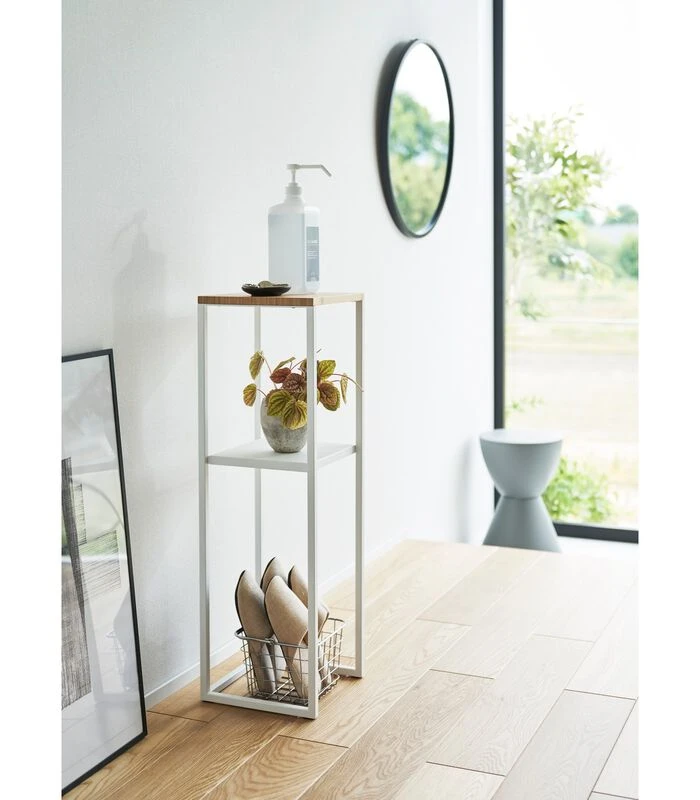 Yamazaki 2-Tiered Shelf W/ Wooden Top – Tower – White