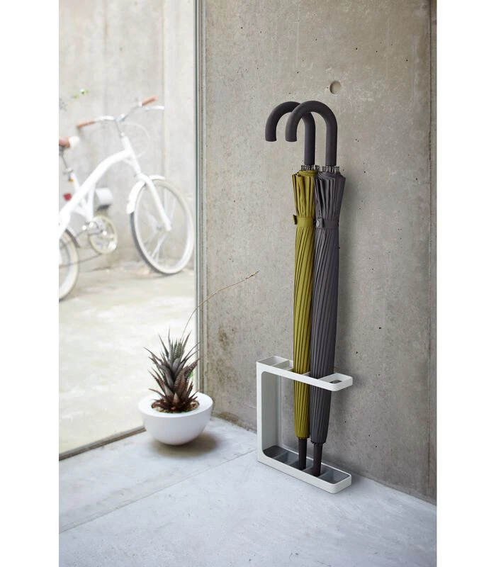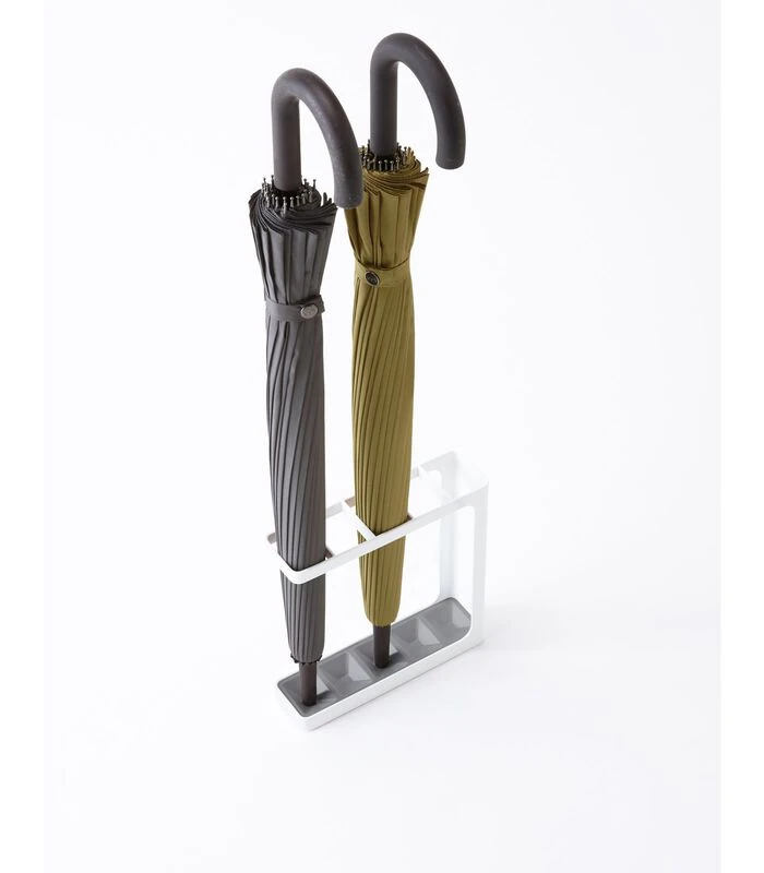 Deze paraplu standaard van Yamazaki biedt plaats aan maximaal vijf paraplu’s. Dankzij zijn slanke vorm, past de standaard zelfs in de meest krappe ruimtes. Door zijn simpele en moderne design past de standaard in iedere hal.