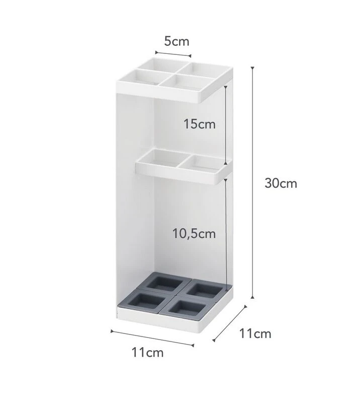 Een slimme en mooie paraplu bak. Geschikt voor 4 paraplu’s, groot en klein, dankzij de verstelbare delen in de paraplu bak.